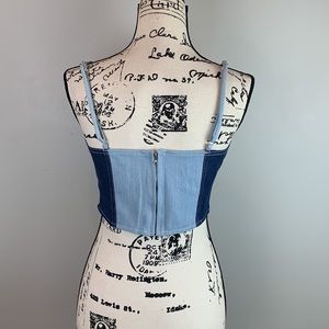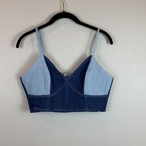 Color Block Patchwork Denim Crop Top