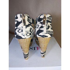 Justfab Maisy Woven Zipper Wedge Platforms Grey White Size 7.5
