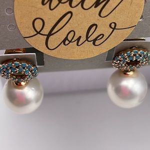 White Pearl with Turquoise Diamonds Golden Plated 18 k new without tag Beautiful Earrings that Combine with any Outfit, Hypoallergenic our earrings are Nickel safe and perfect for sensitive ears . Perfect Gift for Every Occasion.