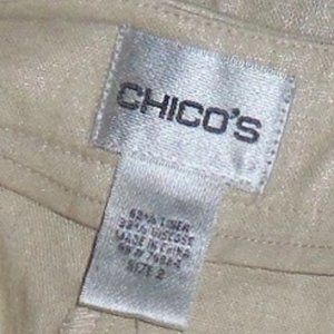 CHICO'S (33x27.5) Ultimate Fit Beige Sparkle Linen Ankle Pant - Sz 2 - LARGE NWT