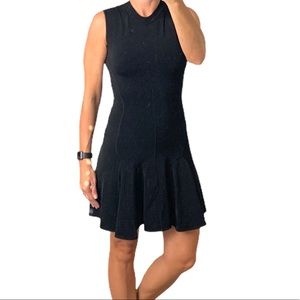 ALAIA Black Body Con Dress with Flowy Skirt. Zip Up Back. Size Tag is Missing. Fits like a Small. The Label Tag is attached only on one side. Heavy Material and Stunning, Figure Fitting Dress.