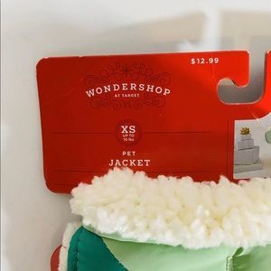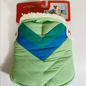 Wondershop Dog Puffer Jacket Aqua V Stripe Sherpa Lined Cat Vest XS 10 Lbs