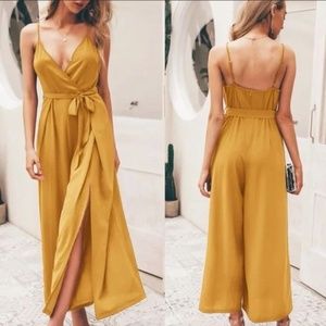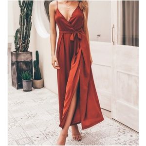 Boho Burnt Orange split thigh belted Wide Leg cami jumpsuit