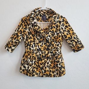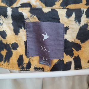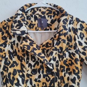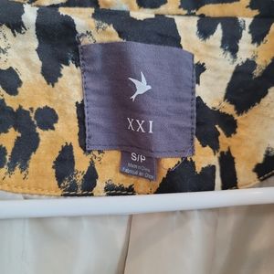 Forever 21 Animal Print Blazer Jacket Women's Size XS. Can be worn as a blazer or light jacket. 6 Black buttons in the front ( some of the coming loose as shown in pictures) 2 Front pockets. It has belt loops on the side but the tie belt is not included.