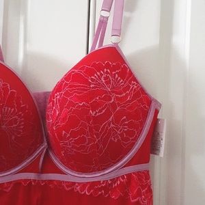 Auden, new with tags, red & pink push-up underwire nightgown, size XL. Nightgown only.