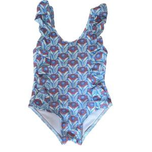 Adorable one-piece suit with ruffled straps size 2 girls like no clean, smoke-free pet free home, stitching on back a little wonky (see pics)- brand is Beachingo but this is a liberty of London fabric