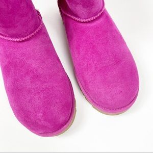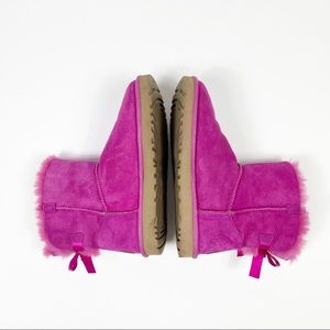 Ugg Mini Bailey Bow 2 Fuschia Pink Bootie. Rare color. Slip on. Treadlite sole. Sheepskin lining. Excellent condition. Worn once. Size 8.