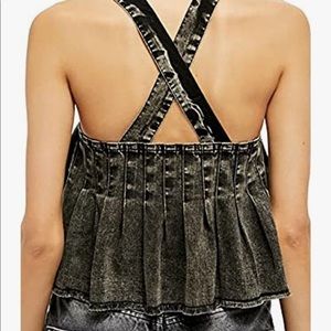 Free people marina babydoll denim crop top. Square neck.adjustable crisscross straps.