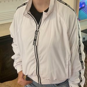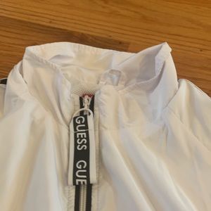 GUESS white jacket functional pockets lightly worn waterproof great to wear durning spring or fall with jeans