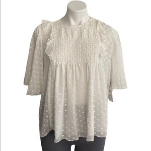 This beautiful capri has stud detail, with zippers on the sides. It is in perfect condition, with some small yellow spots that can be seen in the photos.