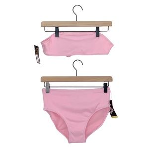 Girls Bandeau Ribbed Top & High Rise Hipster Ribbed Bottom Bikini Swim Set L