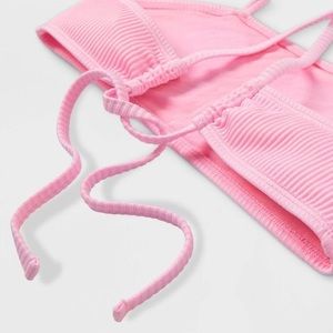 Tags: Girls Bikinis, Padded girls bikini, ribbed girls bikini, high rise bottoms, tie back top, pink bikini, pink girls bikini