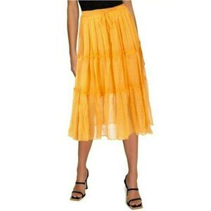 NWT Rosemarine Made In Italy Linen Crochet Hem Bow Tie Back Midi Dress