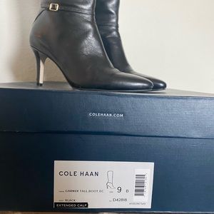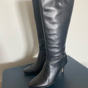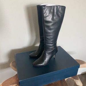 Worn 1x wide calf tall black boots with heel