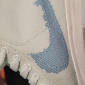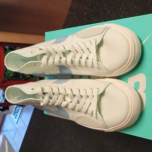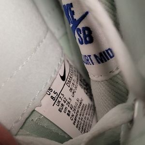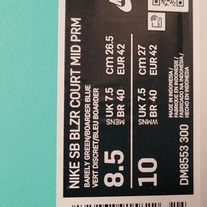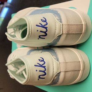 Barely Green/Sail Boarder Blue, retro vibe, mid-cut collar, canvas/ synthetic leather, reinforced patch for extra durability, grippy rubber sole, ink stain Swoosh, NWT