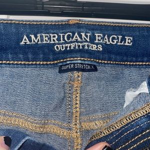 American Eagle size 6 denim jean shorts. Dark blue, distressed. Good condition, never worn.