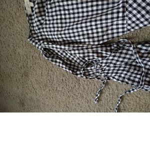 LOFT - BLACK & WHITE CHECKED LONG SLEEVE SHIRT - SLEEVES HAVE TIES - SIZE SP