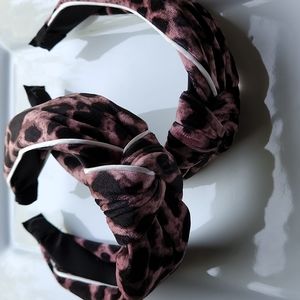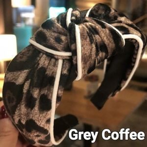 New leopard 🐆 print headband. Top knot detail & white piping decorates the sides. Choose your color, Deep Pink or Grey Coffee. One size fits all.