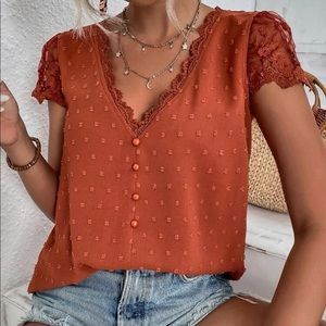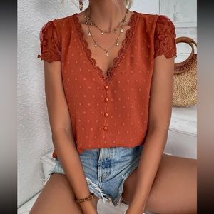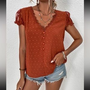Last few rust Swiss dot blouse