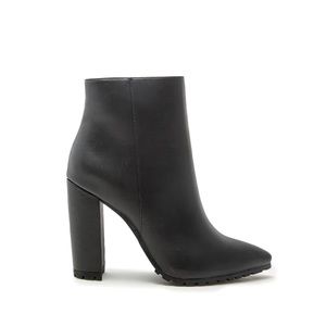Black Chunky Block High Heel Ankle Booties