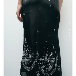 ZARA 2PIECES LIMITED EDITION JEWEL TRIM SATIN EFFECT SKIRT AND TOP