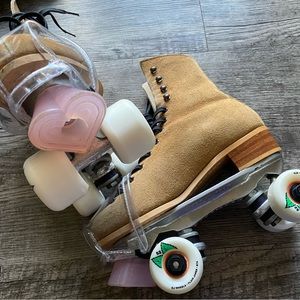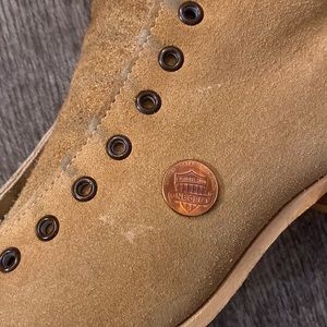 Amazing hard-to-find condition vintage roller skate boots. Suede leather upper, reinforced lower, stacked leather heel, stitched leather sole. Custom reinforced tongue/ankle and tongue stabilizers 🤩