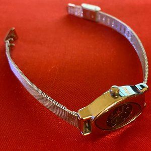 Citizen Quartz Women's Petite Silver Tone Watch: No. 1032-R19561 RC. Battery installed, works. Black dial. Water resistant. Adjustable mesh band. Fits up to 7 1/2 inches.