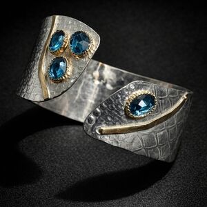 14k White Gold Custom Cut Tanzanite & Sapphire Ring