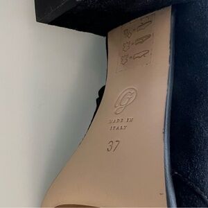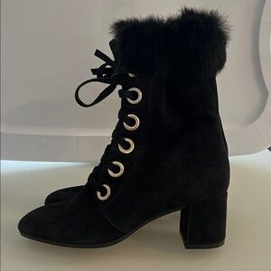 M. Gemi black suede boots with fur trim, size 7. Never worn, pristine condition.
