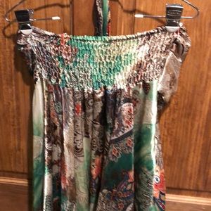 New with tags never worn. Ty halter top. Silky material polyester. Could be used as a dress or bathing suit cover-up. Elastic back
