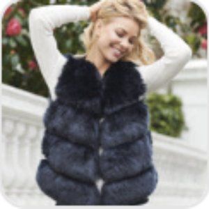 Popski London "Faye" Faux Fur Vest Gilet Navy Blue One Size