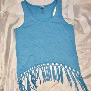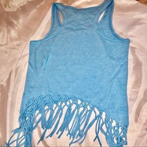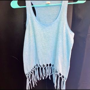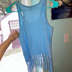 SOLD CLEARANCE - Kavio, Lite blue, fringed, cropped tank top. Size m