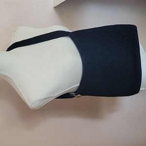 Navy Blue Crocheted THE Sak purse 12.5 x10W with 24" strap, navy blue satin lining, excellent condition never used,