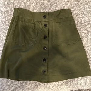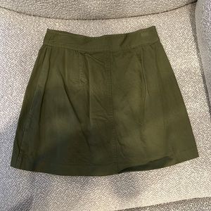 Madewell green mini skirt. Size 2. Two pockets on the front with buttons