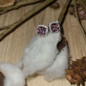 BREATHTAKING!!! BARBIE PINK Halo Cut CZ stud earrings