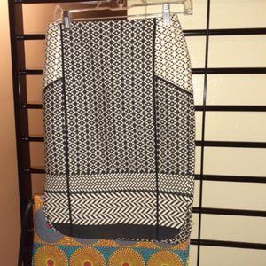 cute cream and black patterned skirt partially lined cotton/poly with poly lining.