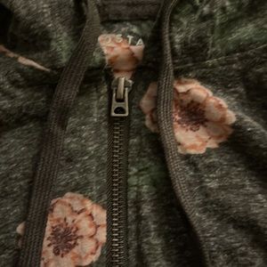 aero grey floral zip up hooded sweatshirt