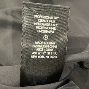 This is a short Alice and Olivia Cocktail Dress in Black, Size 4. It has a zipper closure as shown. It has been worn, but was well cared for. It might have minor wear including fraying of the fabric, hanging strings, or other small imperfections, but nothing that is noticeable as pictured.