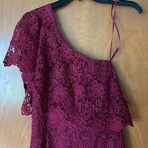 Worn only once (to a wedding). Nanette Lepore, size 10. Color is maroon. I’m 5’8” and it hits just below the knee.