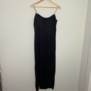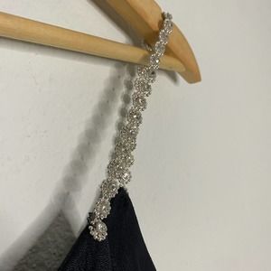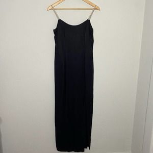 Gunnie Sax Black Tight Midi Dress with Front Leg Slit & Rhinestone Straps 9/10