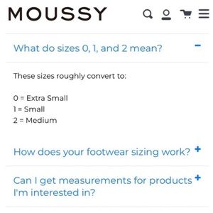 MOUSSY SIZE 2 TRANSLATION IS US SIZE MEDIUM OR 24/25.