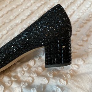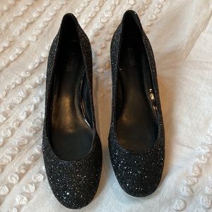 Michael Kors size 9.5 Black glitter embellished with sparkly block heel evening shoes. 2 inch heel. Gently worn. Truly comfortable.