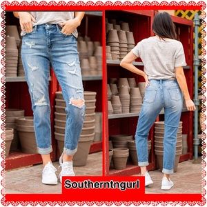 NWT✳️JUDY BLUE✳️Mid Rise Distressed Bleach Splashed Boyfriend Fit Black Denim Jeans