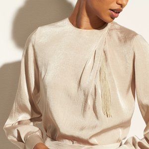 Topshop white peplum jacket. Always gets lots of compliments!! Just too large on me. 100% polyester. Has small pull on right sleeve