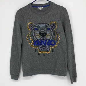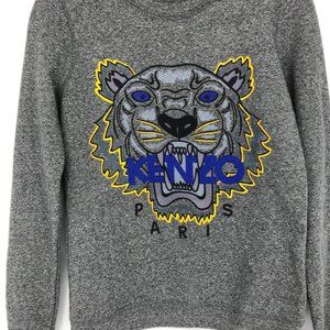 Kenzo light grey crewneck Tiger embroidered pullover sweater men’s XS
