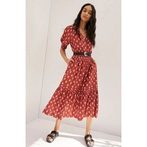 NWT Anthropologie Women's Felipa Maxi Dress Sz M V-Neck Smocked Red