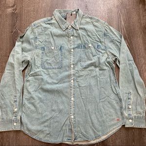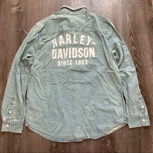 L Harley Davidson Garage Lightweight Denim Long Sleeve Button Up Shirt