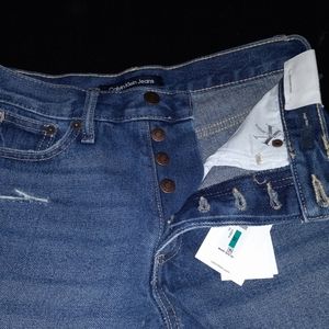 A9-345)))Calvin Klain Jeans Denim Short distress size 4,no stretch, buttons for closure, very cute and pretty