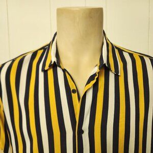 men's cotton shirt L navy pink wild print Elie NWT