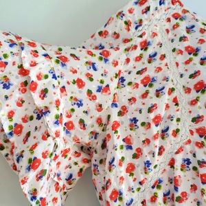 Caffe Marrakesh floral ruffle boho button down blouse size XL